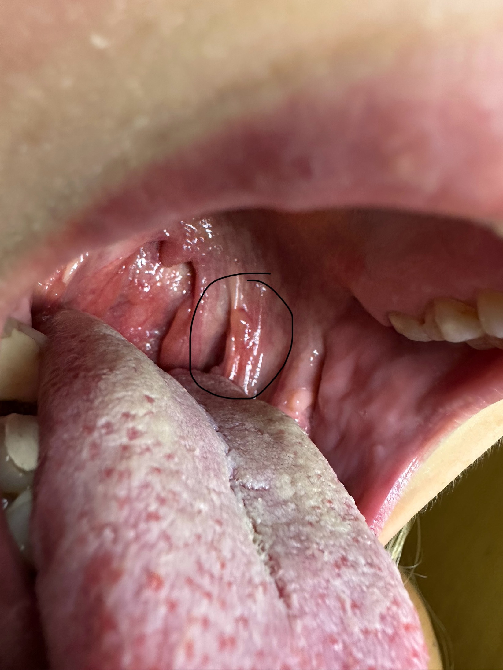 dann ist mir dieser knubbel aufgefallen und ein hängendes gaumensegel.