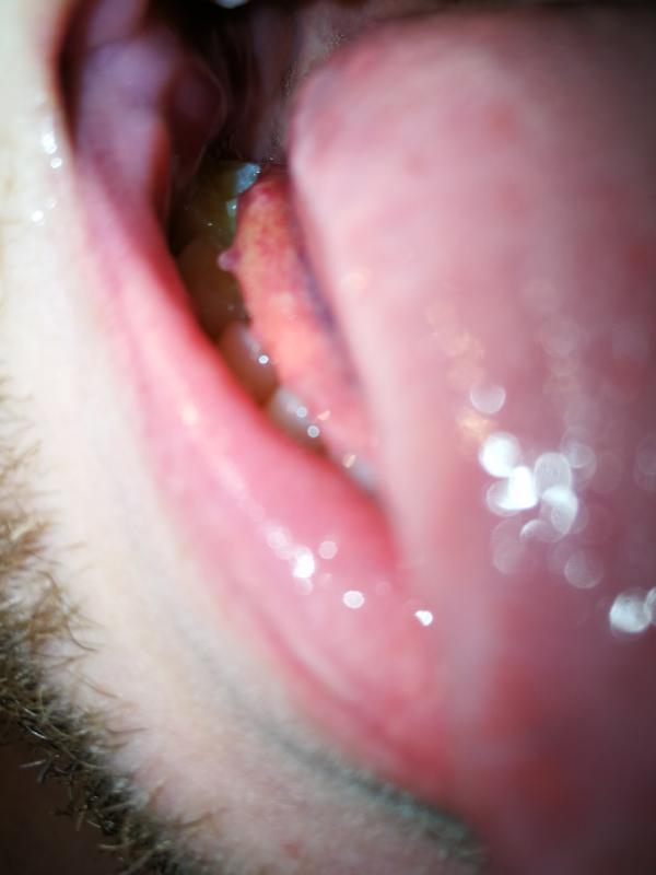 Die Teile sind überall unter der Zunge, jedoch besonders groß im hinteren Bereich.