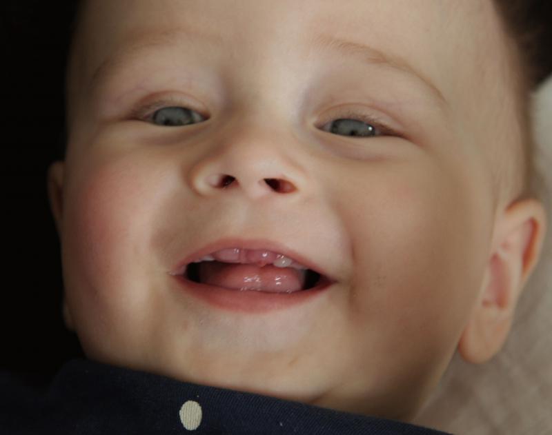 mein Sohn ist 7,5 Monate alt und hat die die ersten Zähne (2 Schneidezähne unten und 2 seitliche oben) bereits sichtbar. Heute haben meine Frau und ich eine Pustel/Schwellung am Zahnfleisch des oberen, linken Schneidenzahn bemerkt – siehe beiliegende Fotos.
