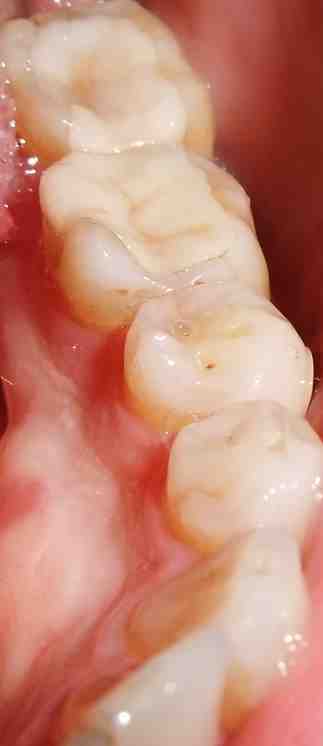 können Sie auf dem Foto erkennen, ob es sich bei dem dunklen Punkt um Karies handelt oder nicht? Es schmerzt und deswegen meine Vermutung/Befürchtung…